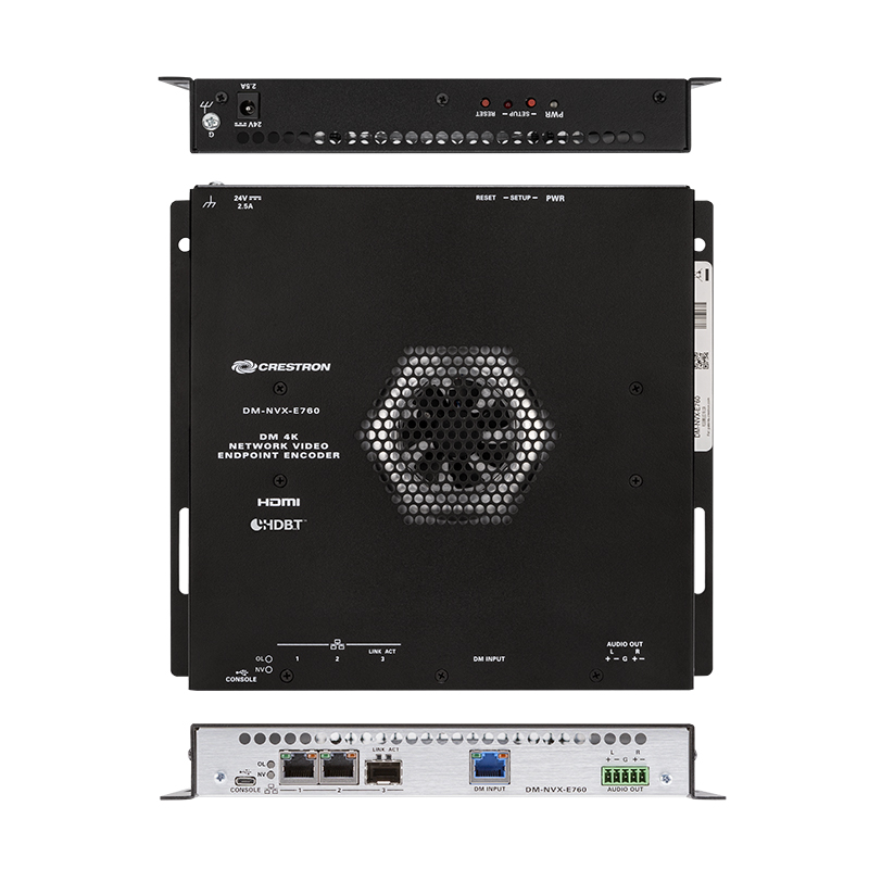 快思聰DM-NVX-E760,DM NVX? 4K60 4:4:4 HDR 網絡 AV 編碼器,帶 DM? 輸入,一種可靠、高性能的 AV over IP 編碼器,可通過標準千兆以太網傳輸 4K60 4:4:4 視頻,沒有明顯的延遲或質量損失。支持 HDR10 和 HDCP 2.3。包括一個 DM? 輸入,用于與 DM 8G+? 輸出設備和 DM Lite? 發射器進行互操作。提供將 HDBaseT? 系統與 AV over IP 橋接的能力。確保為企業和校園范圍內的內容分發應用提供安全的 4K 信號路由解決方案。